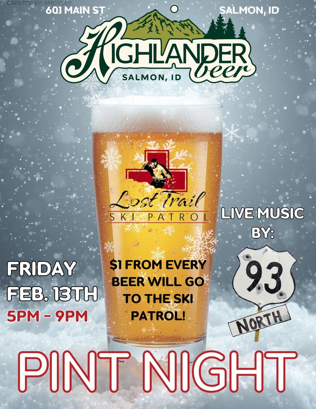 Enjoy live music from Salmon's very own 93 North, great company, delicious brews, and help support Lost Trail Ski Patrol. For every pint sold, $1 will be donated to LTSP and go to helping keep you safe on the mountain. Don't miss out on this opportunity to make a positive impact